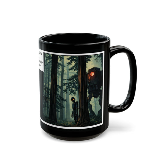 Sinister Droid Black Mug — 15oz Suspense Sci‑Fi Coffee Cup