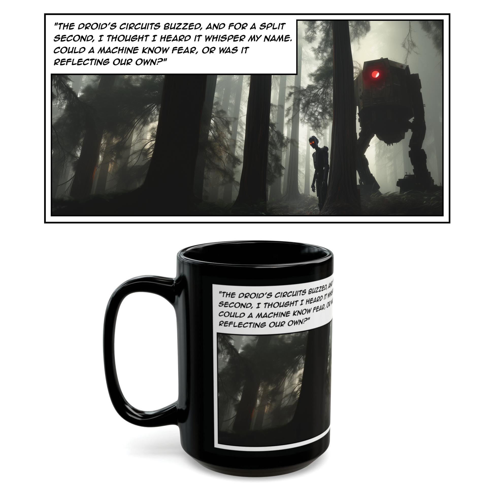 Sinister Droid Black Mug — 15oz Suspense Sci‑Fi Coffee Cup